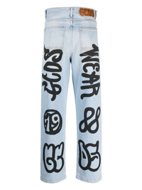 Graffiti wide-leg jeans Highlights - Light blue - Cotton - Denim - Mid wash - Whiskering effect - Logo print to the rear - Rear patch pocket - Mid-rise - Belt loops - Concealed fly and button fastening - Wide leg - Classic five pockets Made in Italy Composition Cotton 100% SIZE & FIT FittingInformation Designed with a straight leg, these jeans allow for an unrestricted and comfortable fit over the leg Sturdy and hard-wearing, this denim piece offers no stretch This piece fits true to size – take your usual size Washing instructions Machine Wash