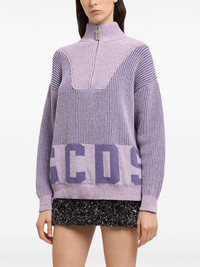 half-zip jumper Highlights - Purple - Cotton blend - Knitted construction - Half front zip fastening - Mock neck - Intarsia-knit logo - Long sleeves - Ribbed cuffs and hem - Straight hem - When buying this unisex item, keep in mind that it is graded in standard men's sizing. Made in Italy Composition Cotton 95%, Other fibres 5%