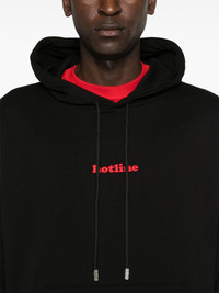 Hotline-embroidered hoodie Highlights - Black - Cotton - Jersey texture - Drawstring hood - Hotline embroidered to thhe front - Drop shoulder - Long sleeves - Front pouch pocket - Ribbed cuffs and hem - When buying this unisex item, keep in mind that it is graded in standard men's sizing. Made in Italy Composition Cotton 100% SIZE & FIT Model measurements Height 5 ft 11 in(1.8 m) Bust/Chest 32.67 in(83 cm) Hips 35.03 in(89 cm) Waist 25.19 in(64 cm) FittingInformation This unisex piece is designed for a loose fit whether you usually select women's or men's sizes The ribbed hem offers a close, comfortable fit Made from a midweight non-stretch fabric, this piece offers minimal elasticity when worn