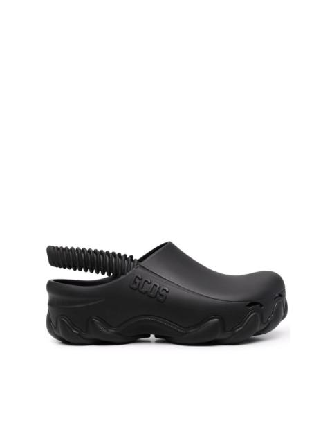 logo-detail slides Highlights - White - Round toe - Ridged sole - Back strap - Elasticated strap - Logo detail Imported Composition Outer: Rubber 100% Lining: Rubber 100% Sole: Rubber 100%