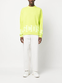 intarsia-knit logo jumper lime green cotton blend ribbed knit intarsia-knit logo crew neck long sleeves Made in Italy Composition Cotton 50%, Acrylic 50% SIZE & FIT Model measurements Height 6 ft 0 in(1.84 m) Bust/Chest 36.22 in(92 cm) Hips 35.43 in(90 cm) Waist 26.77 in(68 cm) FittingInformation This piece fits true to size. We recommend you get your regular size Cut for a loose fit Made with a mid-weight fabric Washing instructions Hand Wash