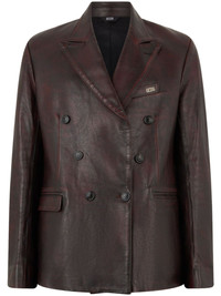 leather double-breasted blazer Highlights - Bordeaux red - Leather - Smooth grain - Double-breasted button fastening - Peak lapels - Long sleeves - Buttoned cuffs - Chest welt pocket - Logo patch at the chest - Side flap pocket - Side welt pocket - Central rear vent Made in Italy Composition Leather 100%