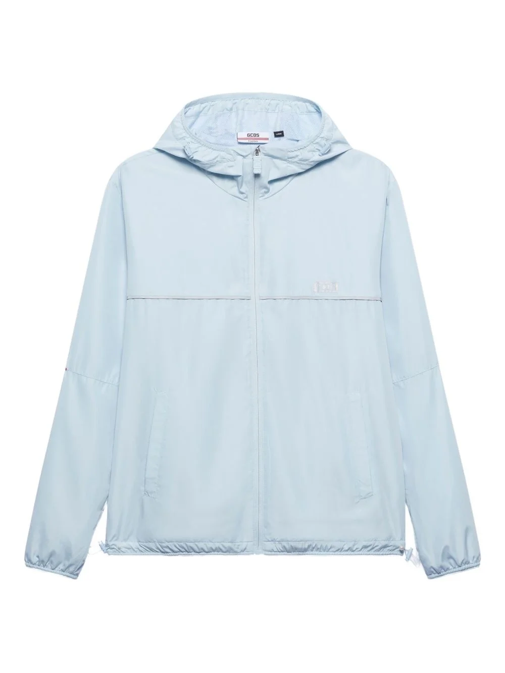 logo-applique windbreaker jacket Highlights - Light blue - Front zip fastening - Side welt pocket - Elasticated cuffs - Drawstring hem Imported Composition Lining: Polyester 100% Outer: Polyamide 100%