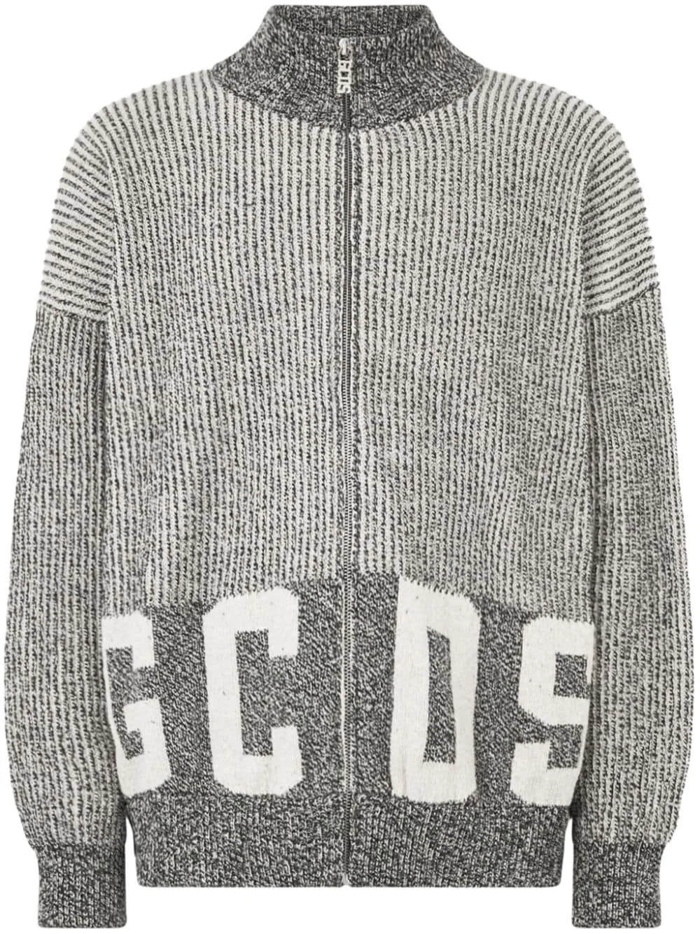 logo cardigan Highlights - Grey - Cotton blend - Ribbed knit - Front zip fastening - Long sleeves - Embroidered logo to the front - Ribbed cuffs and hem Made in Italy Composition Cotton 95%, Other fibres 5%
