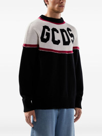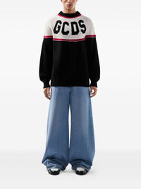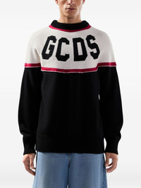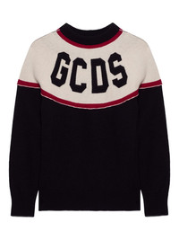 logo-intarsia sweater Highlights - Black - Intarsia logo - Round neck - Ribbed trims - Long sleeves - Striped detail Made in Italy Composition Wool 50%, Recycled Wool 50% Washing instructions Read Manufacturer Guidelines