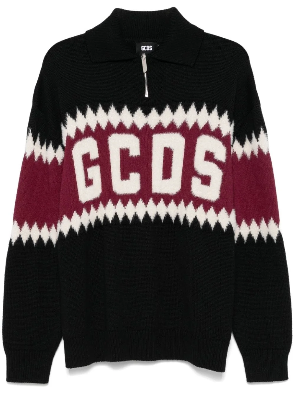 logo-intarsia sweater Highlights - Black - Knitted construction - Intarsia-knit logo to the front - Short front zip fastening - Spread collar - Drop shoulder - Long sleeves - Ribbed cuffs and hem Made in Italy Composition Virgin Wool 35%, Acrylic 35%, Cotton 13%, Polyamide 10%, Polyester 6%, Other fibres 1% SIZE & FIT Model measurements Height 6 ft 2 in(1.87 m) Bust/Chest 38.97 in(99 cm) Hips 37.99 in(96.5 cm) Waist 29.52 in(75 cm) FittingInformation Designed for a relaxed fit, this piece allows for comfort and movement when worn The ribbed hem offers a close, comfortable fit Made with a midweight knit, this piece offers some stretch