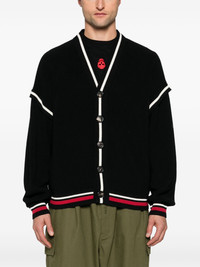 logo knit cardigan Highlights - Black - Cotton - Ribbed knit - Embroidered logo to the rear - Front button fastening - Striped edge - V-neck - Drop shoulder - Long sleeves - Straight hem Made in Italy Composition Cotton 100% SIZE & FIT Model measurements Height 6 ft 2 in(1.87 m) Bust/Chest 37.79 in(96 cm) Hips 37.79 in(96 cm) Waist 30.31 in(77 cm) FittingInformation Designed to be unstructured, offering a loose fit throughout The ribbed hem offers a close, comfortable fit Made with a midweight knit, this piece offers some stretch