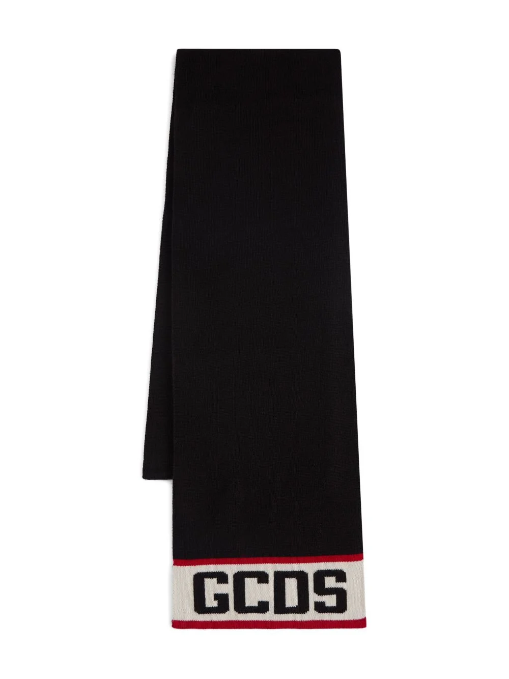 logo knitted scarf Highlights - Black - Wool blend - Ribbed knit - Logo detail - Stripe detail - Wrap-around style - Rectangle shape Made in Italy Composition Wool 50%, Acrylic 50% Washing instructions Read Manufacturer Guidelines