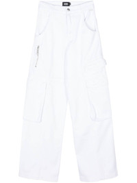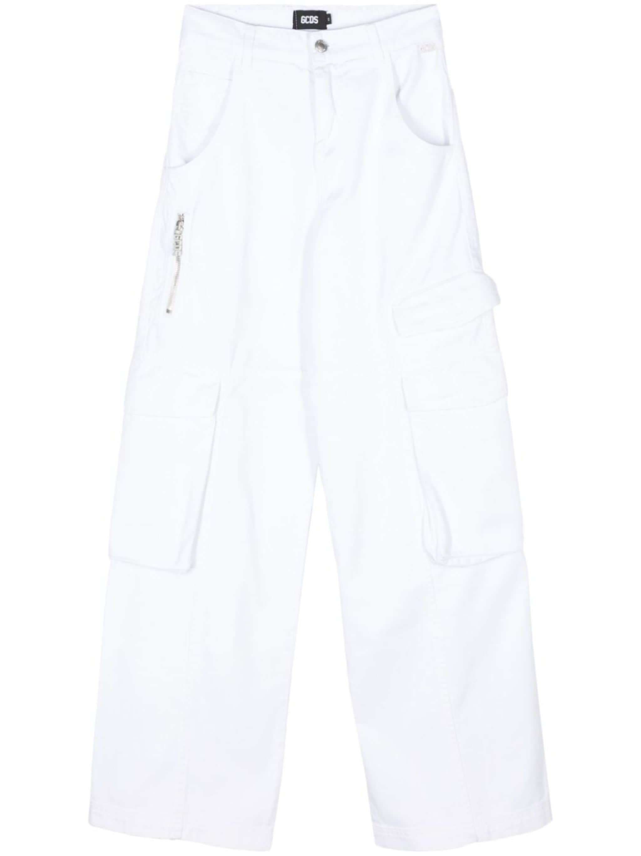 white cotton denim belt loops classic five pockets logo lettering two side flap pockets two side cargo pockets straight leg front button and zip fastening Size & Fit Model Measurements: Bust: 0cm Height: 0cm Hips: 0cm Waist: 0cm Fabric and Care Designer Style ID: A2CM2900TG5 Designer Colour: 10 BIANCO OTTICO Composition: Cotton 100% Washing instructions: Dry Clean Only Made in Italy