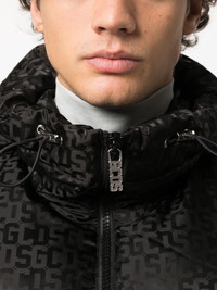 logo-monogrammed hodded gilet Highlights - Black - Econyl® - Down-feather filling - Padded design - Monogram pattern - Slouchy hood - Front zip fastening - Sleeveless - Two side zip-fastening pockets Imported Composition Outer: Polyamide 100% Lining: Polyester 100%, Feather Down 100% SIZE & FIT Model measurements Height 6 ft 2 in(1.88 m) Bust/Chest 37.79 in(96 cm) Hips 35.82 in(91 cm) Waist 29.92 in(76 cm) FittingInformation Designed for a boxy fit, intended for a loose fit throughout The internal drawstring at the hem allows for fitted preferences Made from a padded non-stretch fabric, giving it no natural elasticity This piece fits true to size – take your usual size Washing instructions Hand Wash