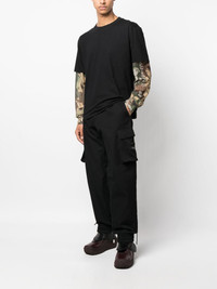 logo-patch cargo trousers Highlights - Black - Cotton - Logo patch to the rear - Belt loops - Concealed fly and button fastening - Elasticated ankles - Two side cargo pockets - Two rear flap pockets - Two side inset pockets Made in Italy Composition Lining: Polyester 65%, Cotton 35% Outer: Cotton 100% SIZE & FIT Model measurements Height 6 ft 2 in(1.87 m) Bust/Chest 38.18 in(97 cm) Hips 36.61 in(93 cm) Waist 29.13 in(74 cm) FittingInformation Designed for a relaxed tapered leg, allowing a comfortable loose fit above the knee with a closer fit towards the calves The elasticated hem at the ankle allows for movement and a comfortable fit Made from a midweight non-stretch fabric, this piece offers minimal elasticity when worn This piece fits true to size – take your usual size