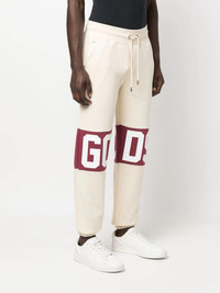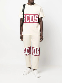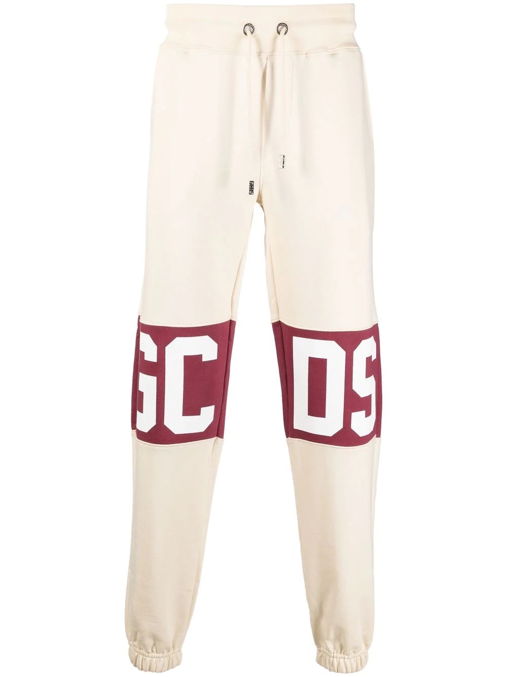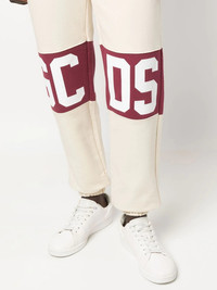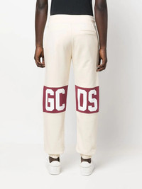 logo-print cotton track pants logo-print cotton track pants from GCDS featuring cream white, bordeaux red, cotton, jersey fleece, logo print to the front, logo print to the rear, contrasting panel detail, elasticated drawstring waistband, rear welt pocket, straight leg and elasticated ankles. Made in Italy Composition Cotton 100% SIZE & FIT Model measurements Height 6 ft 0 in(1.84 m) Bust/Chest 36.2 in(92 cm) Hips 38.6 in(98 cm) Waist 29.1 in(74 cm) FittingInformation This piece fits true to size. We recommend you get your regular size Cut for a slim fit Made with a mid-weight fabric