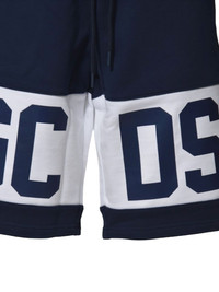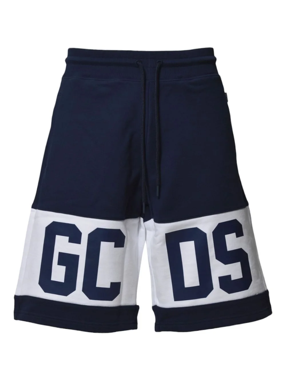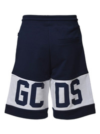logo-print shorts Highlights - Navy blue - Large logo lettering - Contrast panel design - Elasticated drawstring waistband - Side pockets Imported Composition Cotton 100%