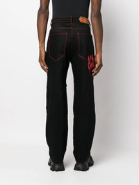 logo-print straight-leg jeans jet black cotton blend contrast stitching logo print at the leg belt loops front button and zip fastening classic five pockets straight leg Made in Italy Composition Lining: Polyester 65%, Cotton 35% Outer: Cotton 98%, Spandex/Elastane 2% SIZE & FIT Model measurements Height 6 ft 2 in(1.88 m) Bust/Chest 36.61 in(93 cm) Hips 35.82 in(91 cm) Waist 27.95 in(71 cm) FittingInformation This piece fits true to size. We recommend you get your regular size Regular fit Made with a mid-weight stretch fabric Washing instructions Hand Wash