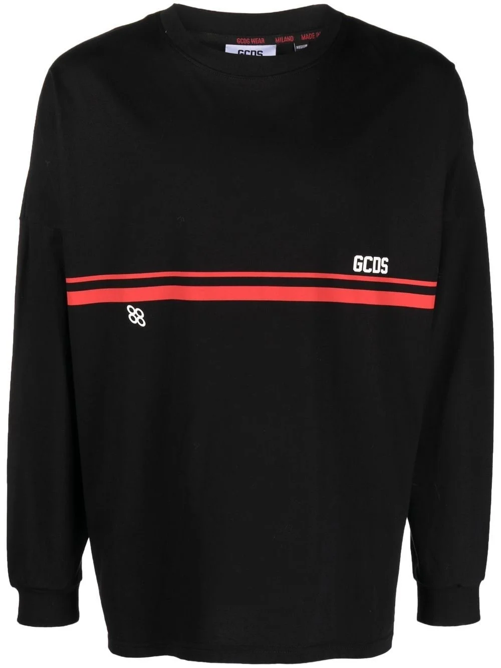 logo-print striped sweatshirt black/red cotton logo print at the chest side stripe detailing crew neck long sleeves straight hem Made in Italy Composition Cotton 100% SIZE & FIT Model measurements Height 6 ft 2 in(1.87 m) Bust/Chest 36.22 in(92 cm) Hips 37 in(94 cm) Waist 27.95 in(71 cm) FittingInformation This piece fits true to size. We recommend you get your regular size Cut for a relaxed fit Made with a mid-weight fabric Washing instructions Machine Wash