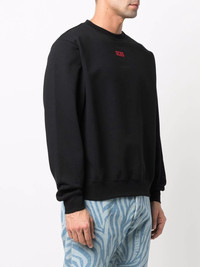 logo-print crew neck sweatshirt jet-black cotton crew neck logo print to the front long sleeves ribbed hem Made in Italy Composition Cotton 100% SIZE & FIT Model measurements Height 6 ft 1 in(1.85 m) Bust/Chest 37.79 in(96 cm) Hips 37.4 in(95 cm) Waist 30.7 in(78 cm) FittingInformation This piece fits true to size. We recommend you get your regular size Cut for a relaxed fit Made with a mid-weight fabric Washing instructions Machine Wash