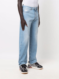 light-wash wide-leg jeans blue cotton light wash folded edge mid-rise logo patch to the front front button and zip fastening slip pockets to the sides belt loops Made in Italy Composition Lining: Polyester 65%, Cotton 35% Outer: Cotton 100% SIZE & FIT Model measurements Height 6 ft 2 in(1.88 m) Bust/Chest 34.25 in(87 cm) Hips 36.22 in(92 cm) Waist 30.31 in(77 cm) FittingInformation This piece fits true to size. We recommend you get your regular size Regular fit Made with a mid-weight non-stretch fabric Washing instructions Machine Wash