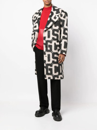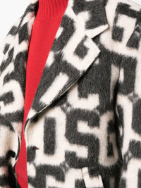 monogram-print single-breasted coat black/white monogram pattern notched lapels front button fastening two side welt pockets side patch pocket long sleeves central rear vent straight hem knee-length Made in Italy Composition Outer: Polyester 29%, Acrylic 27%, Mohair 26%, Virgin Wool 18% Lining: Viscose 100% SIZE & FIT Model measurements Height 6 ft 2 in(1.87 m) Bust/Chest 38.18 in(97 cm) Hips 36.61 in(93 cm) Waist 29.13 in(74 cm) FittingInformation This piece fits true to size. We recommend you get your regular size Cut for a loose fit Made with a mid-weight non-stretch fabric Washing instructions Dry Clean Only