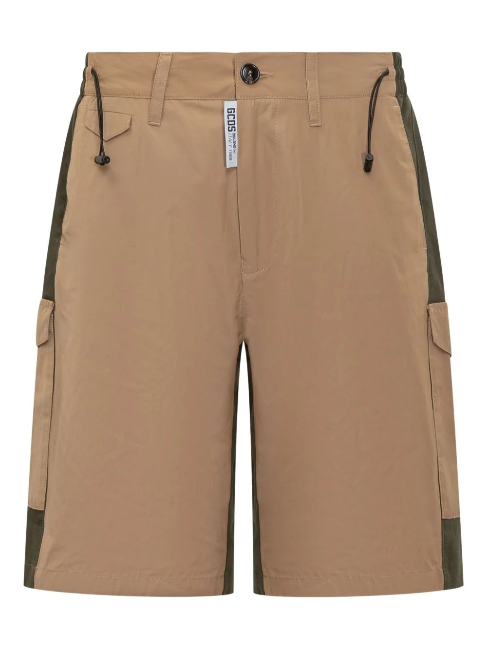 panelled shorts Highlights - Beige - Front button fastening - Belt loops - Drawstring waist - Two side cargo pockets Imported Composition Outer: Polyester 59%, Cotton 41% Lining: Cotton 98%, Elastane 2%