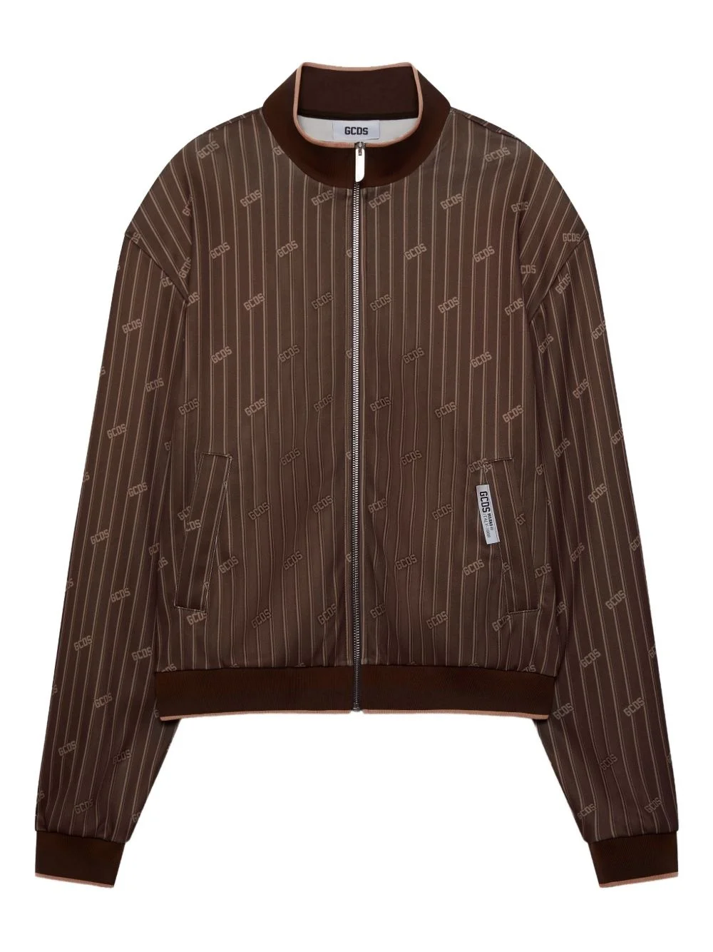 pinstriped track jacket Highlights - Coffee brown - Front zip fastening - Two side welt pockets - All-over logo print - Contrasting trim Imported Composition Polyester 100%