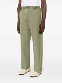 poplin trousers Highlights - Khaki - Concealed fly and button fastening - Elasticated drawstring waistband - Two diagonal pockets to the sides - Two rear flap pockets Imported Composition Polyester 59%, Cotton 41% SIZE & FIT Model measurements Height 6 ft 0 in(1.84 m) Bust/Chest 37.79 in(96 cm) Hips 37 in(94 cm) Waist 31.49 in(80 cm) FittingInformation Designed for a relaxed straight leg, allowing a comfortable and loose fit over the leg Adjust this piece’s waistband to your preference using the drawstring Made from a midweight non-stretch fabric