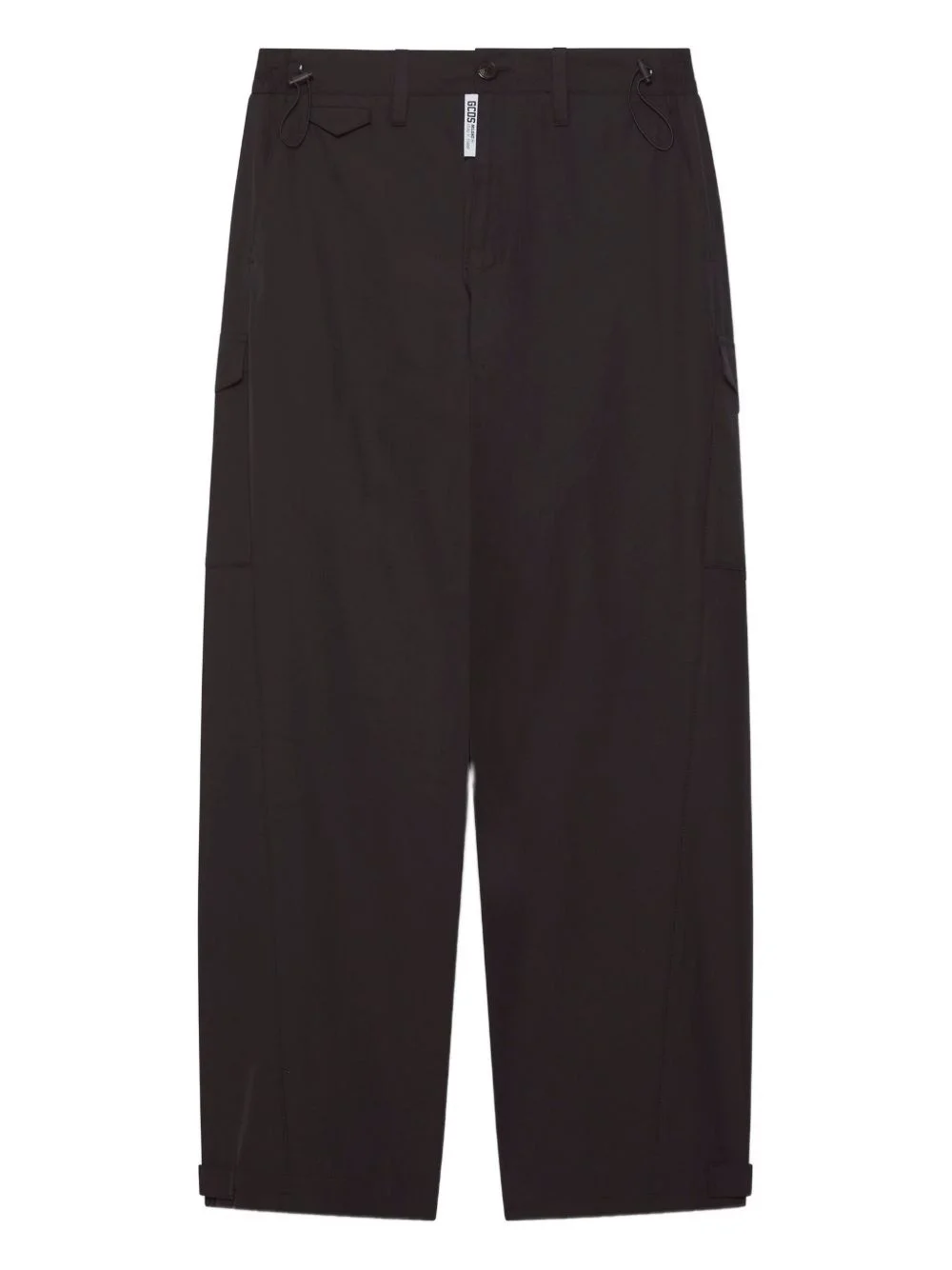 poplin trousers Highlights - Black - Concealed fly and button fastening - Elasticated drawstring waistband - Two diagonal pockets to the sides - Two rear flap pockets Imported Composition Polyester 59%, Cotton 41%