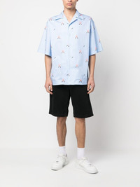 print short-sleeved shirt blue/multicolour cotton notched collar front button fastening short sleeves straight hem Made in Italy Composition Cotton 100% SIZE & FIT Model measurements Height 6 ft 1 in(1.85 m) Bust/Chest 35.82 in(91 cm) Hips 37.79 in(96 cm) Waist 29.13 in(74 cm) FittingInformation This piece fits true to size. We recommend you get your regular size Cut for a loose fit Made with a mid-weight non-stretch fabric Washing instructions Machine Wash