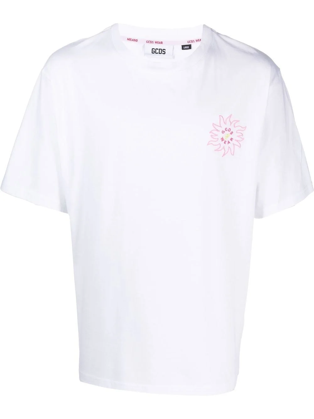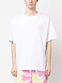 rear logo-print detail T-shirt cloud white cotton logo print to the rear graphic print at the chest round neck short sleeves straight hem Imported Composition Cotton 100% SIZE & FIT Model measurements Height 6 ft 2 in(1.87 m) Bust/Chest 35.82 in(91 cm) Hips 35.43 in(90 cm) Waist 27.95 in(71 cm) FittingInformation This piece fits true to size. We recommend you get your regular size Cut for a loose fit Made with a mid-weight fabric Washing instructions Hand Wash
