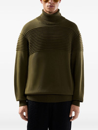 ribbed roll-neck sweater Highlights - Military green - Ribbed design - Roll neck - Long sleeves - Straight hem Made in Italy Composition Wool 50%, Acrylic 50% Washing instructions Read Manufacturer Guidelines