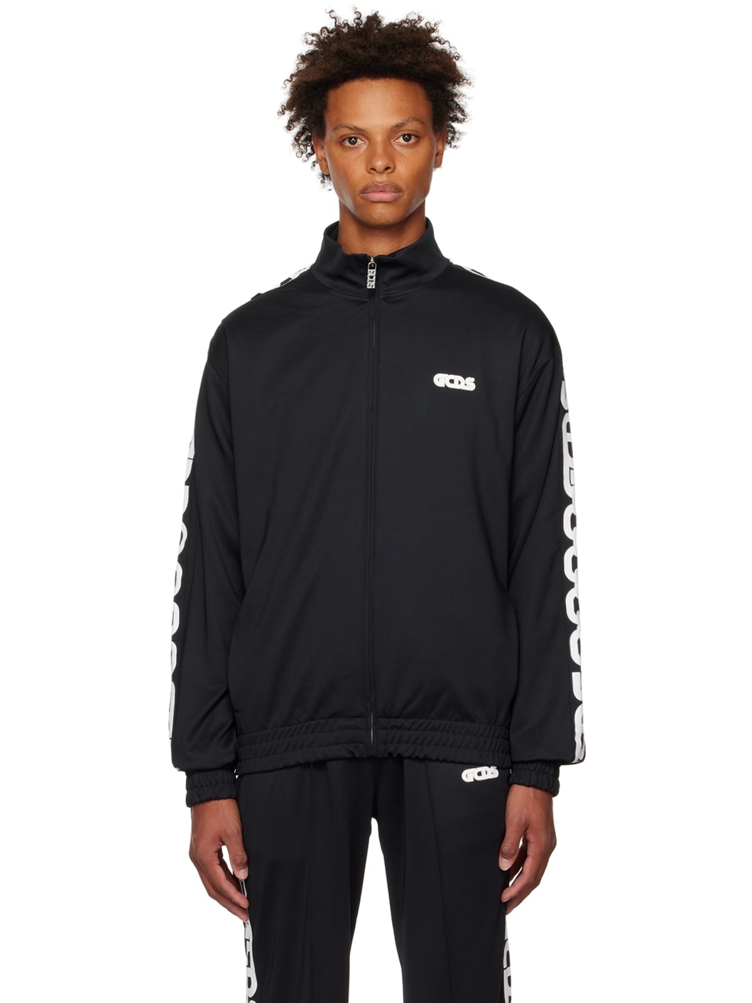 Stretch polyester jersey jacket. · Stand collar · Zip closure · Rubberized logo at chest · Seam pockets · Elasticized hem · Graphic bonded at sleeves Supplier color: Black 95% polyester, 5% elastane.