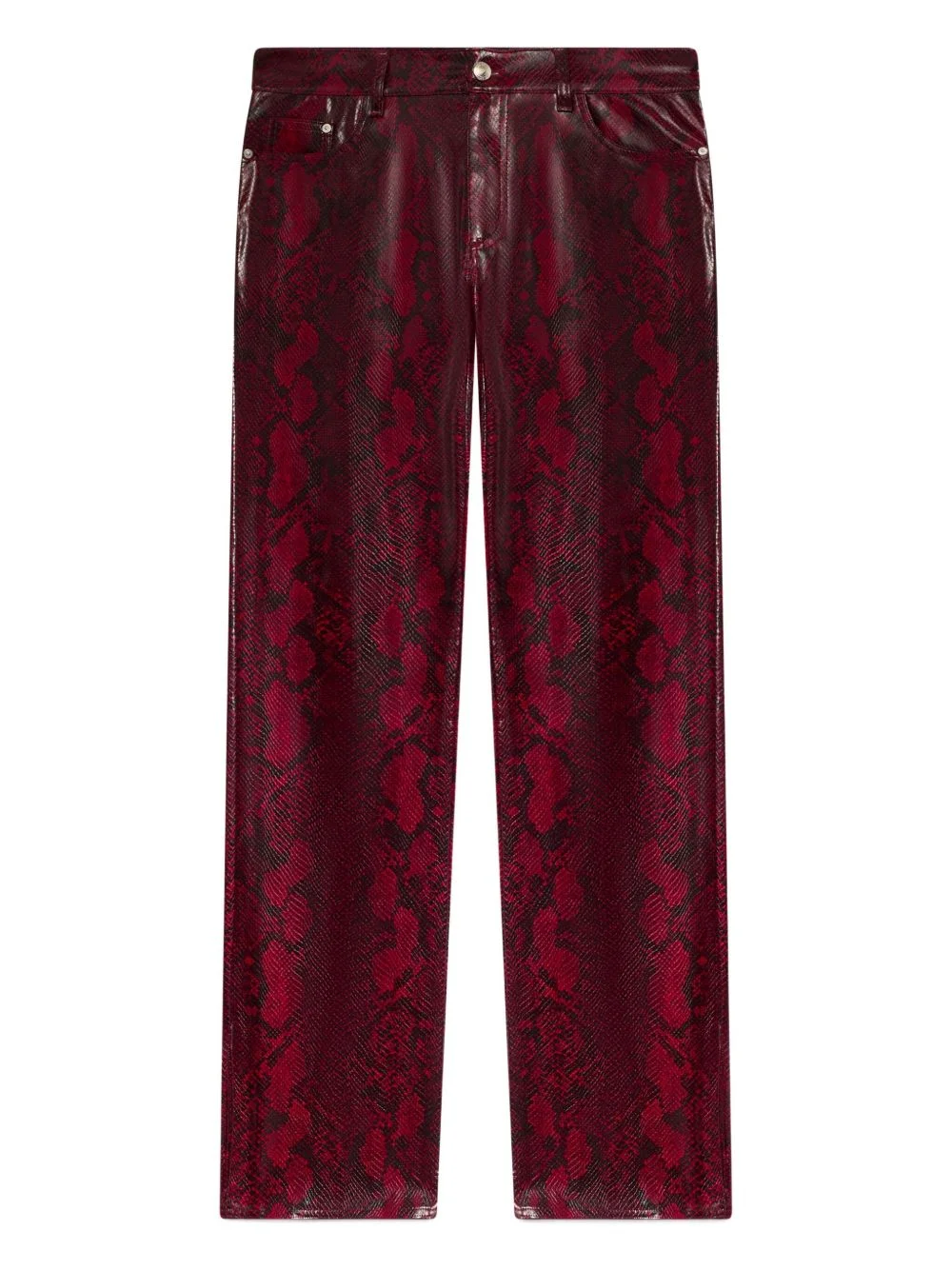 Split hem snakeskin trousers Highlights - Red - Snakeskin pattern - Split hem - Belt loops - Five pockets - Button fastening Made in Italy Composition Polyester 100% Washing instructions Read Manufacturer Guidelines