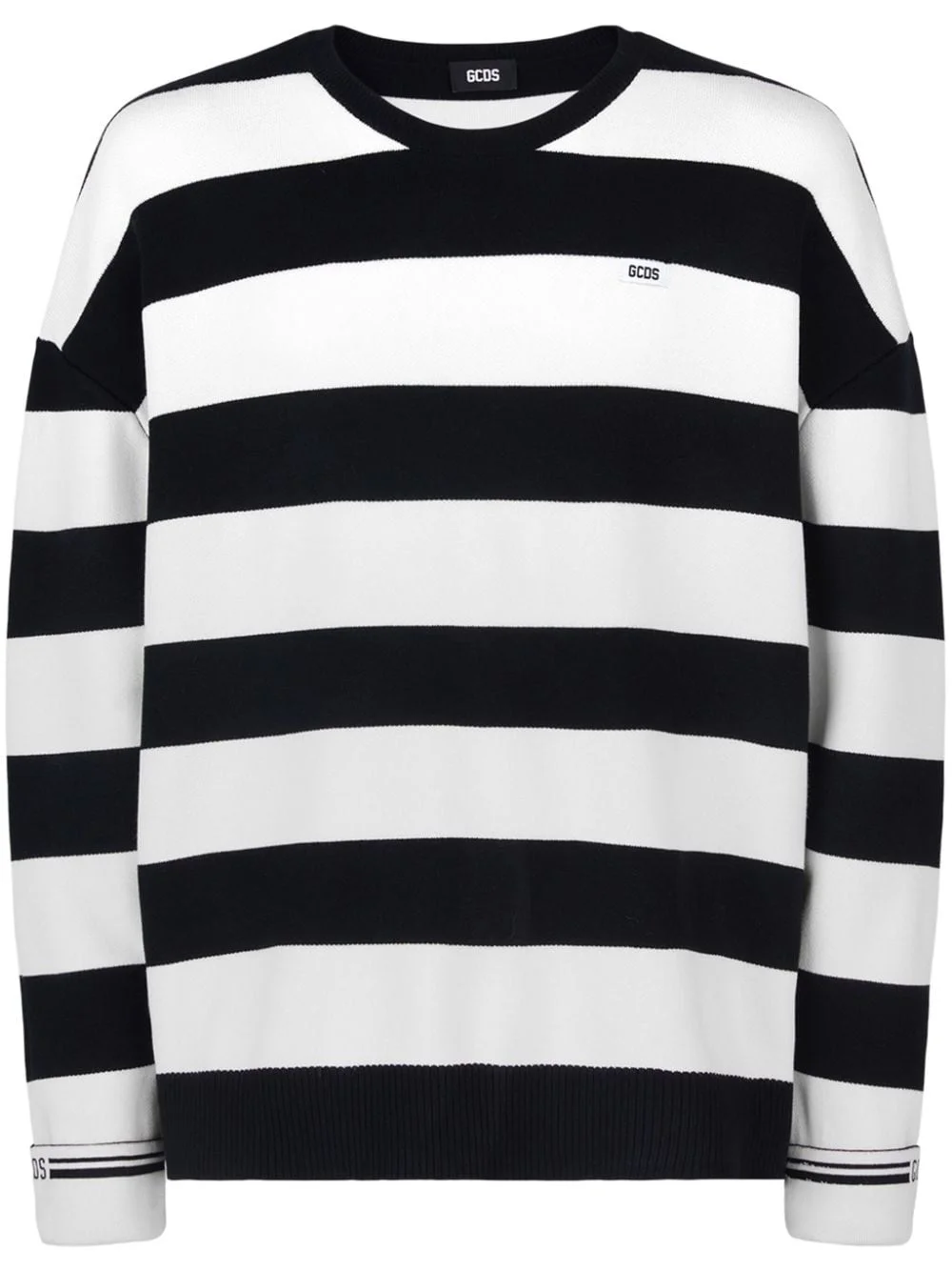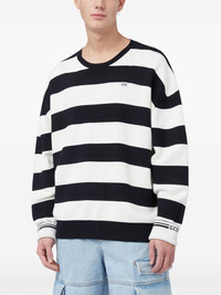 striped logo-applique sweatshirt Highlights - Black/white - Horizontal stripe pattern - Applique logo - Crew neck - Drop shoulder - Long sleeves - Ribbed trim - Straight hem Imported Composition Viscose 100%