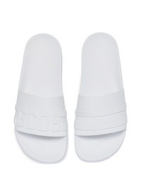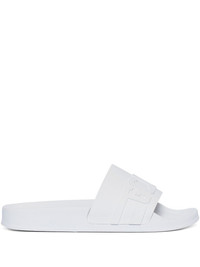 logo-embossed pool slides Highlights - White - Single toe strap - Embossed logo to the front - Stripe detailing Made in Italy Composition Sole: Rubber 100% Outer: Rubber 100% Lining: Calf Leather 100%