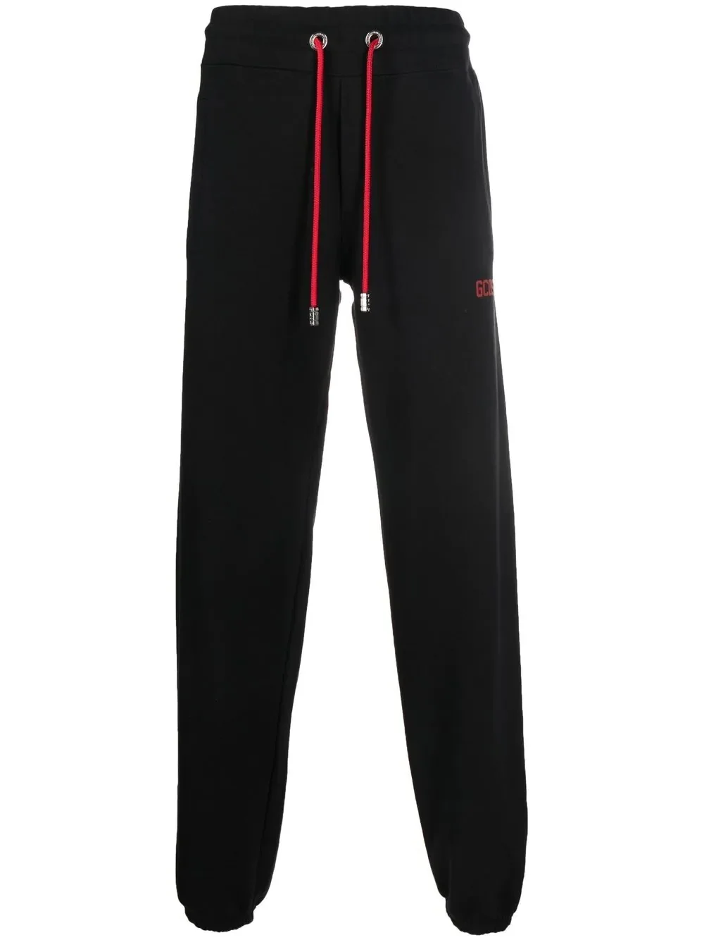 tapered-leg drawstring trousers tapered-leg drawstring trousers from GCDS featuring black/red, cotton, logo print to the front, drawstring waist, tapered leg and elasticated ankles. Imported Composition Cotton 100% SIZE & FIT Model measurements Height 6 ft 2 in(1.89 m) Bust/Chest 37.79 in(96 cm) Hips 37 in(94 cm) Waist 29.92 in(76 cm) FittingInformation This piece fits true to size. We recommend you get your regular size Designed to be loose over the leg with a fitted waist and hem Made with a mid-weight fabric Washing instructions Machine Wash