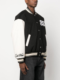 two-tone logo-patch bomber jacket Highlights - Black/white - Stretch-cotton - Logo patch at the chest - Logo patch to the front - Embroidered logo at the sleeve - Stripe trim - Band collar - Front press-stud fastening - Long sleeves - Two front welt pockets - Ribbed cuffs and hem Made in Italy Composition Outer: Polyester 100%, Cotton 96%, Elastane 4% Lining: Polyester 100% SIZE & FIT Model measurements Height 6 ft 0 in(1.84 m) Bust/Chest 34.64 in(88 cm) Hips 35.03 in(89 cm) Waist 27.95 in(71 cm) FittingInformation Designed to be unstructured, offering a loose fit throughout The ribbed hem offers a close, comfortable fit Made from a padded non-stretch fabric, giving it no natural elasticity This piece fits true to size – take your usual size Washing instructions Dry Clean Only