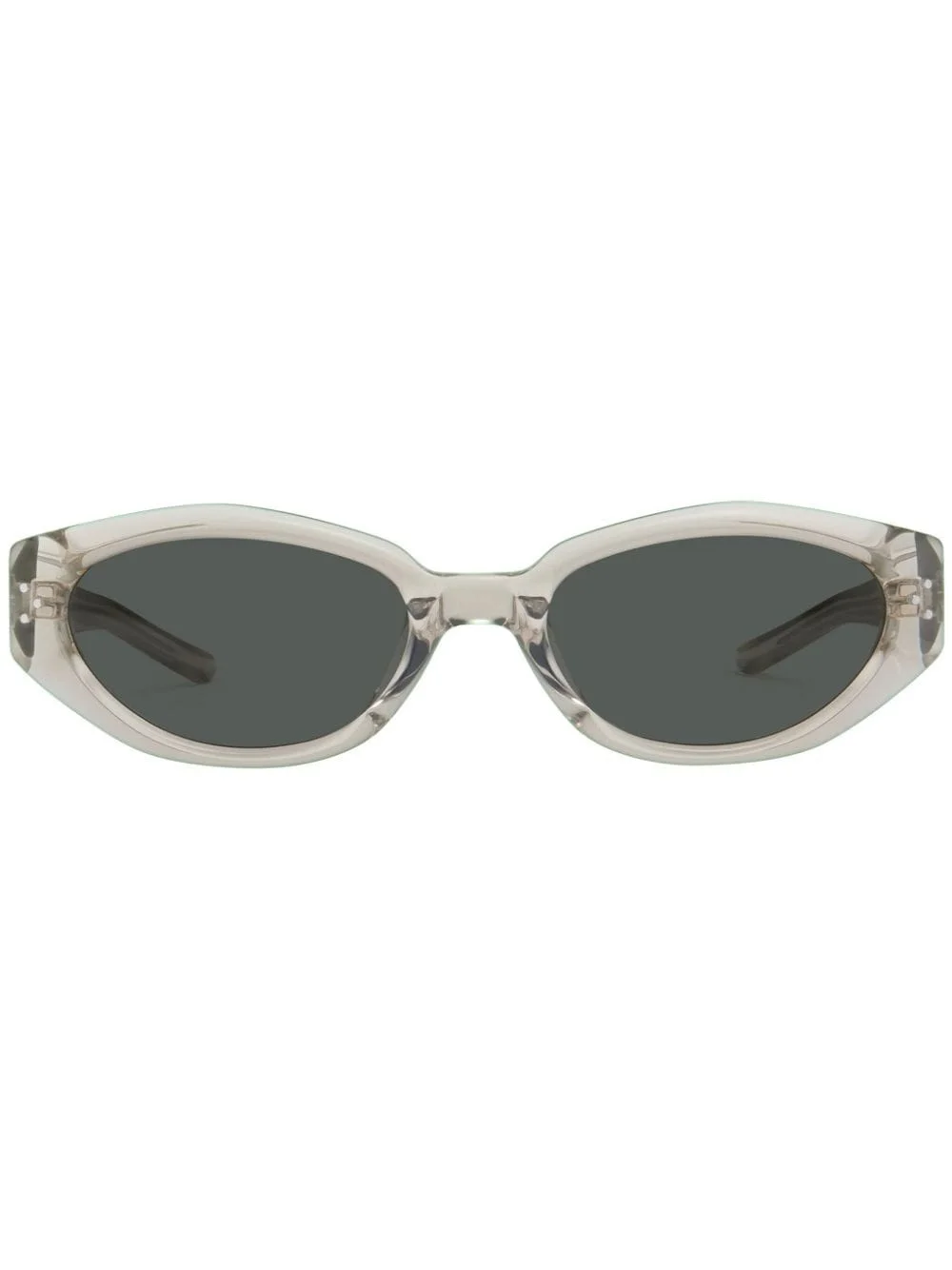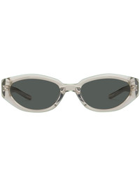 Dada BRC11 sunglasses Highlights - Transparent design - Acetate - Oval frame - Tinted lenses - Metal detail on the side - Logo print to the side - Curved tips - These glasses come with a protective case. Imported Composition Acetate 100% SIZE & FIT Measurement Arm Length 5.68 in(14.4 cm) Total Width 5.78 in(14.7 cm) Lens Diameter 2.16 in(5.5 cm) Bridge Width 0.78 in(2 cm)