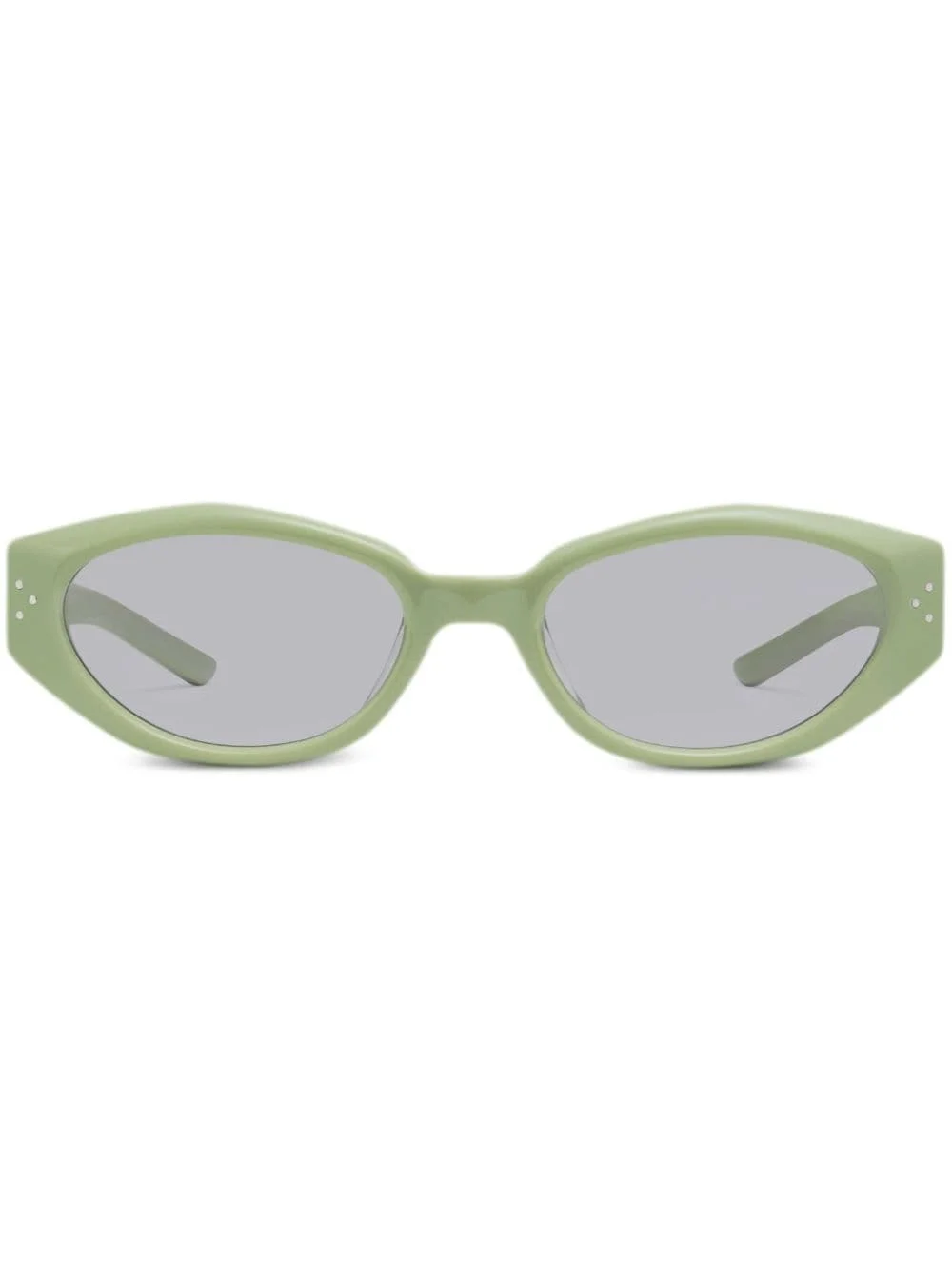 Dada GR8 sunglasses Highlights - Green - Acetate - Cat-eye frame - Grey tinted lenses - Metal detailing on the side - Logo-embossed arm - Curved tips - These glasses come with a protective case. Imported Composition Acetate 100% SIZE & FIT Measurement Arm Length 5.68 in(14.4 cm) Total Width 5.78 in(14.7 cm) Lens Diameter 2.16 in(5.5 cm) Bridge Width 0.78 in(2 cm)