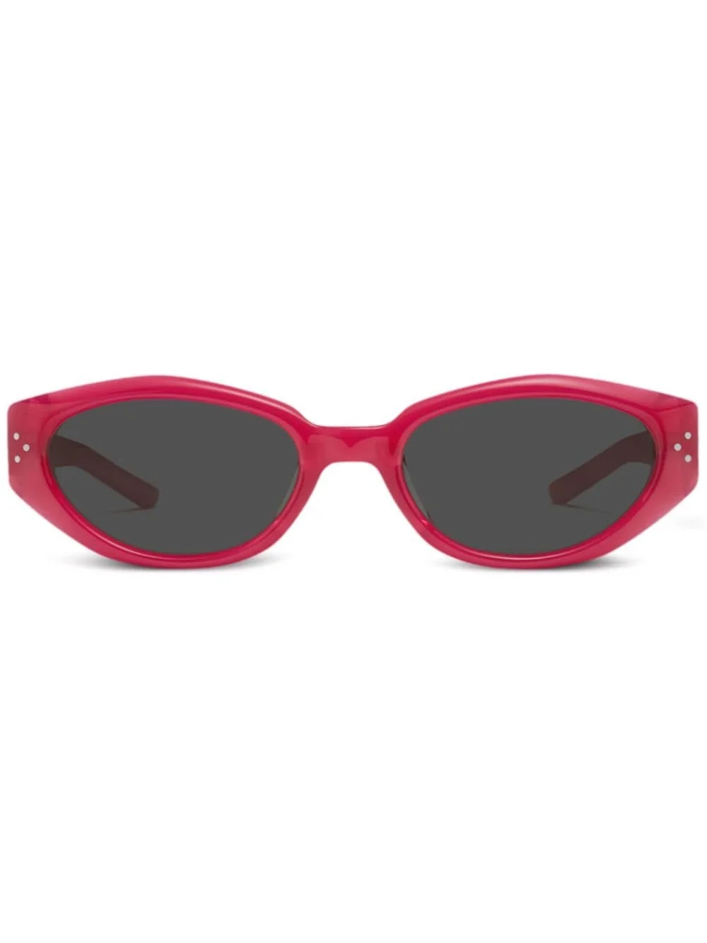 Dada RC6 sunglasses Highlights - Red - Acetate - Oval frame - Tinted lenses - Logo-embossed arm - Metal detailing on the side - Curved tips - These glasses come with a protective case. Imported Composition Acetate 100% SIZE & FIT Measurement Arm Length 5.68 in(14.4 cm) Total Width 5.78 in(14.7 cm) Lens Diameter 2.16 in(5.5 cm) Bridge Width 0.78 in(2 cm)