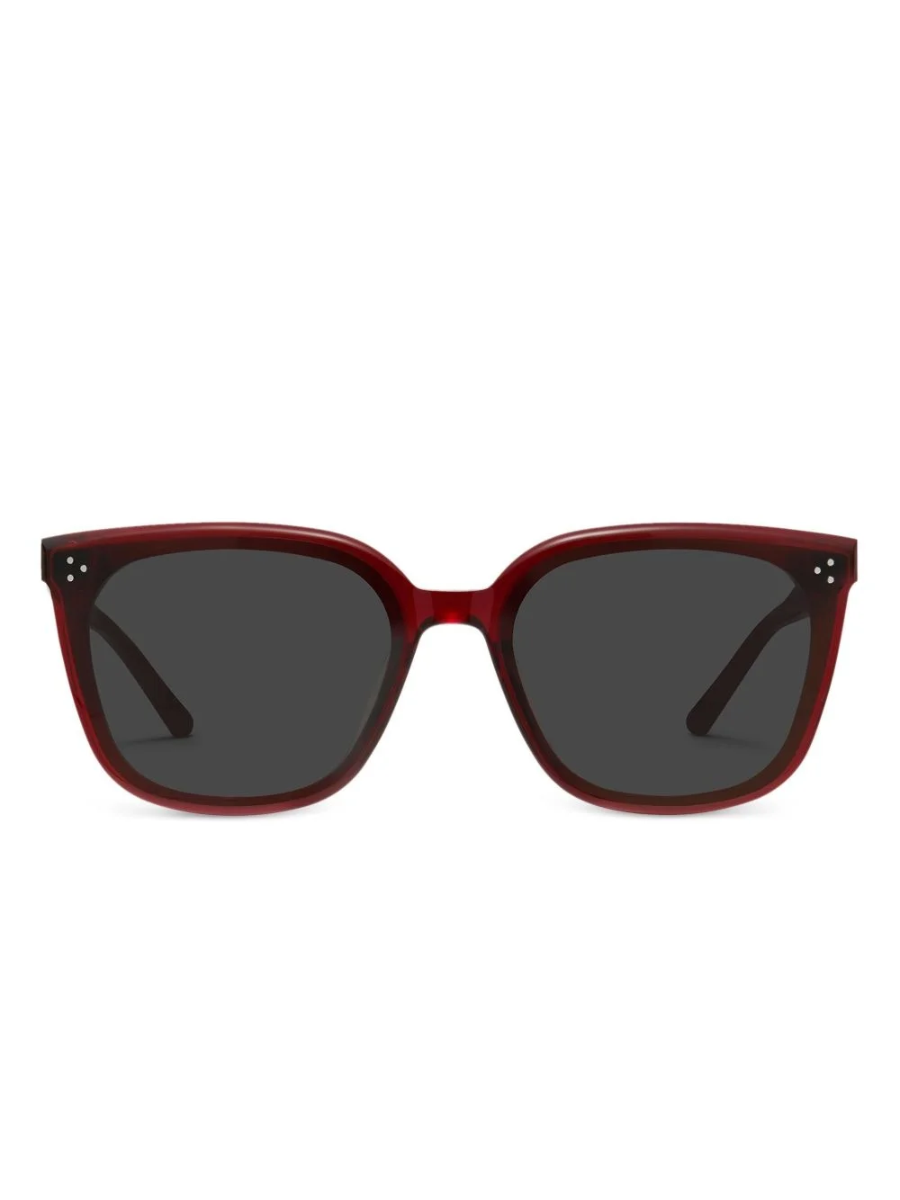 Loloe square-frame sunglasses Highlights - Dark red - Grey tinted lenses - Straight arms - Curved tips - These glasses come with a protective case. Imported Composition Acetate 100% SIZE & FIT Measurement Arm Length 5.74 in(14.6 cm) Bridge Width 0.62 in(1.6 cm) Lens Diameter 2.51 in(6.4 cm) Total Width 5.82 in(14.8 cm)