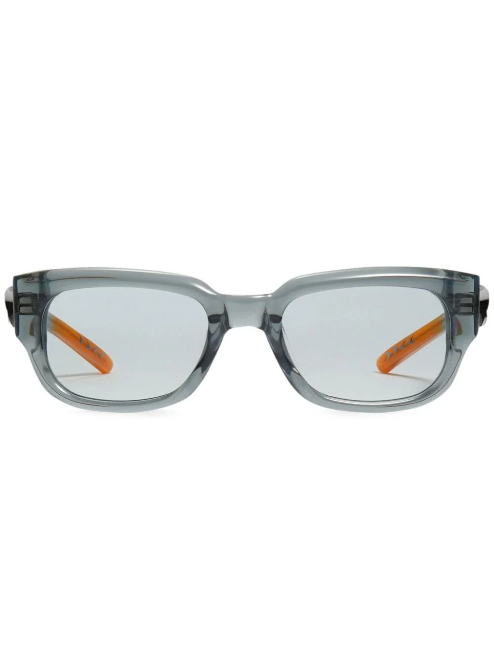 Nine Part Piece GC5 rectangle-frame sunglasses Highlights - Grey - Acetate - Silver-tone hardware - Transparent design - Rectangle frame - Blue tinted lenses - Straight arms - Straight tips - These glasses come with a protective case. Imported Composition Acetate 100% SIZE & FIT Measurement Arm Length 5.72 in(14.5 cm) Total Width 5.7 in(14.5 cm) Lens Diameter 2.09 in(5.3 cm) Bridge Width 0.82 in(2.1 cm)