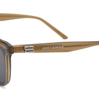 Channelling Gentle Monster’s take on sleek and chic eyewear, the Pino Sunglasses feature a structured square silhouette and simple, slim frame. Embellished with delicate metal details and embossed logo branding, the sunglasses offer a sophisticated design for day-to-day wear. - Translucent Khaki Acetate Frame - Black Lenses - Square Shape - Slim Frame - Signature Metal Details - Embossed Branding