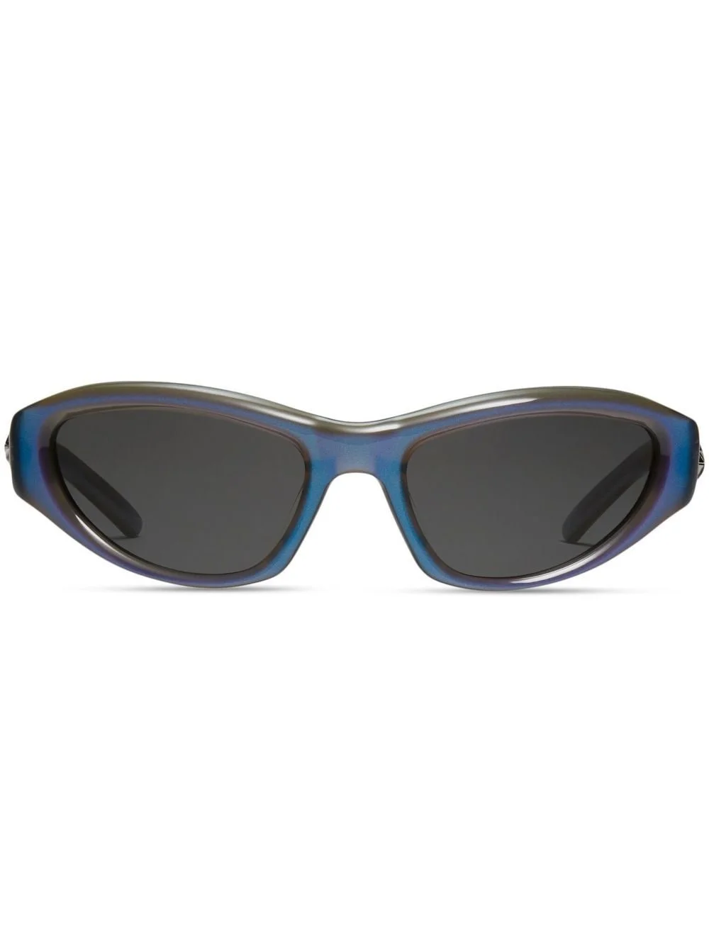 R.E.A.T BLC6 pilot-frame sunglasses blue/lilac purple acetate iridescent effect biker-style frame tinted lenses logo plaque at the arm curved arms These glasses come with a protective case. Imported Composition Acetate 100% SIZE & FIT Measurement Arm Length 4.98 in(12.6 cm) Total Width 5.82 in(14.8 cm) Lens Diameter 2.18 in(5.5 cm) Bridge Width 0.78 in(2 cm) Washing instructions Specialist Cleaning