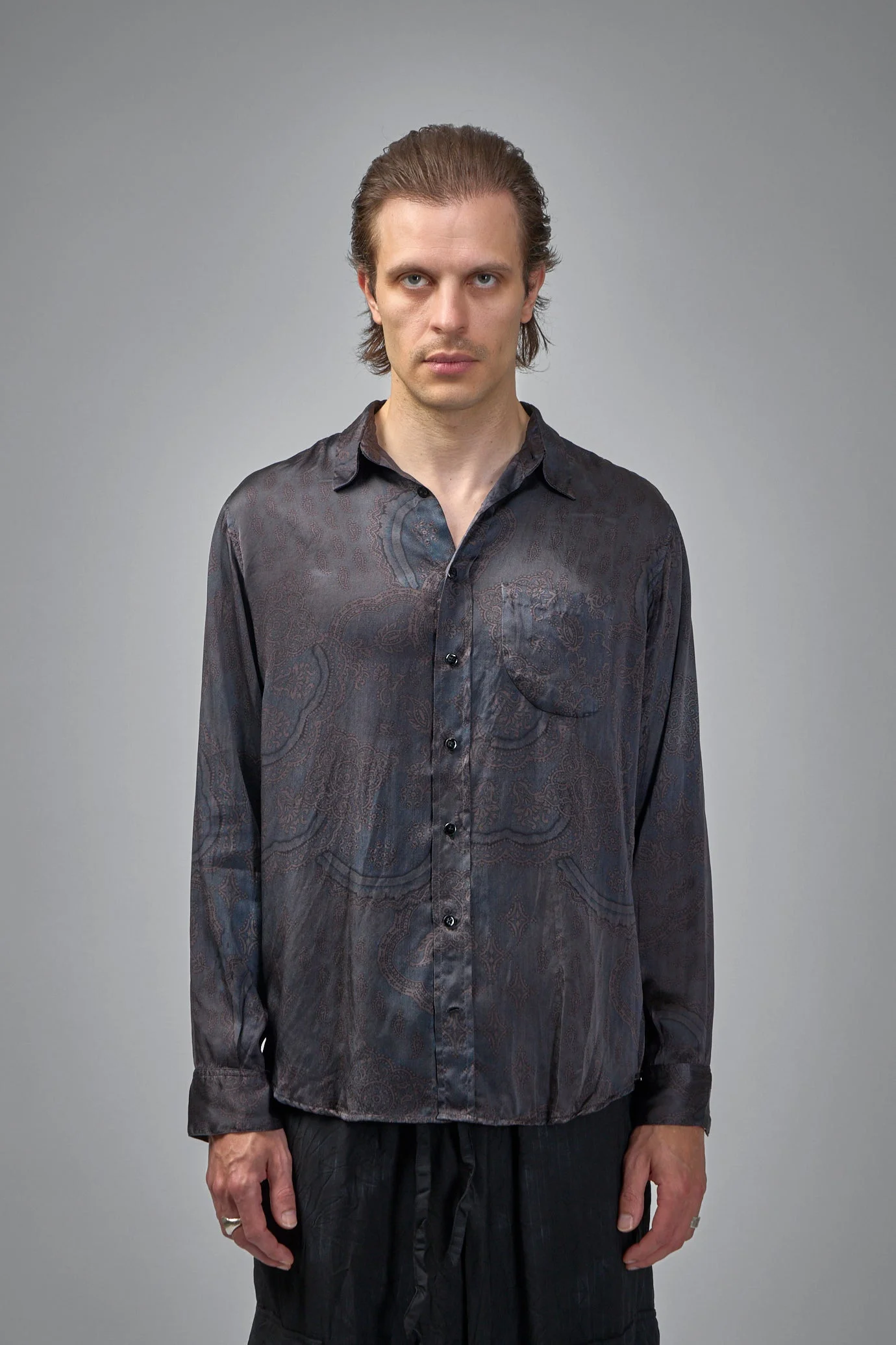- pure como silk raso satin exclusive hand dyed paisley print fabric - silk hand-stitched buttonholes & real mother-of-pearl buttons Materials: 100% silk Color: dark blue, grey SKU: 151611 Brand style: EV9S14 Size and Fit The model is 1.86m (6.1ft) and wears a size M. The item fits as expected according to standard sizing. Order your usual size.