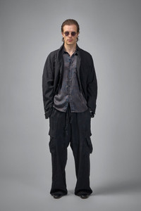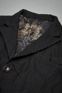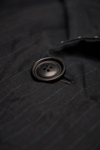 - advanced design exaggerated volume superjacket - hand accident dyed biella super 120's extrafine tasmanian wool luxury suiting cloth with pure silk linings - silk hand-stitched buttonholes & extensive hand detail stitching fontana design real horn buttons Materials: 100% wool Color: black stripe SKU: 151616 Brand style: CVJ25AD Size and Fit The model is 1.86m (6.1ft) and wears a size One Size. The item fits as expected according to standard sizing. Order your usual size.
