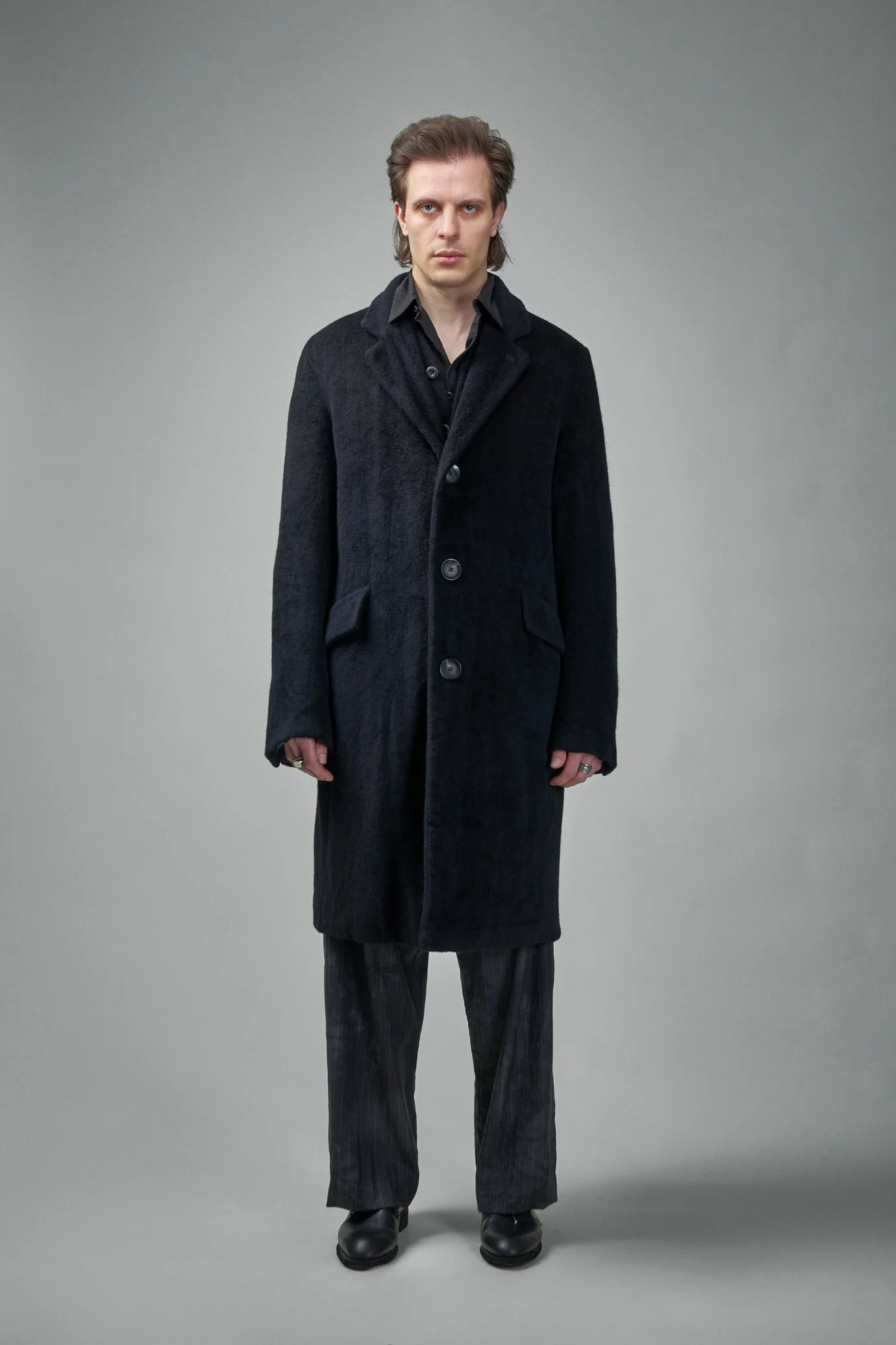 - hand dyed fratelli piacenza 1733 - 550 gram pure alashan 3-ply cashmere superlux coating cloth - pure Como silk 16 momme raso satin linings - silk hand-stitched buttonholes - Fontana real horn design buttons Materials: 100% cashmere 100% silk lining 100% horn buttons Color: hand dyed dark navy SKU: 147367 Brand style: BRC08 Size and Fit The model is 1.86m (6.1ft) and wears a size XL. Tends to fit smaller than standard sizing. Order one size up for a comfortable fit.