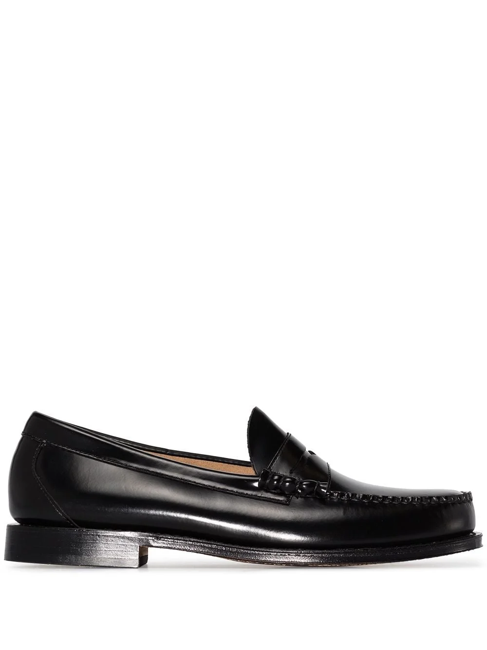 Weejuns Larson penny loafers Are you already familiar with shoes being the first thing that someone notices about your outfit? Make a good impression with these black leather Weejuns Larson penny loafers from G.H.Bass & Co that are the epitome of class and elegance with its stacked heel and smooth leather sole. Step into an elevated new look. Highlights - Black - Leather - Penny slot - Branded insole - Whipstitch trim - Almond toe - Slip-on style - Flat leather sole Made in Italy Composition Outer: Calf Leather 100% Lining: Calf Leather 100% Sole: Calf Leather 100% SIZE & FIT Measurement HEEL 0.98 in(2.5 cm) Sole height 0.39 in(1 cm)