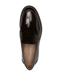 Harris debossed-logo leather loafers Highlights - Mocha brown - Calf leather - Smooth grain - Tonal stitching - Penny slot - Debossed logo to the front - Logo at the sole - Almond toe - Suede lining - Branded leather insole - Rubber outsole Made in Italy Composition Outer: Calf Leather 100% Sole: Rubber 100% Lining: Calf Leather 100% SIZE & FIT Measurement HEEL 1.18 in(3 cm) Sole height 0.78 in(2 cm)