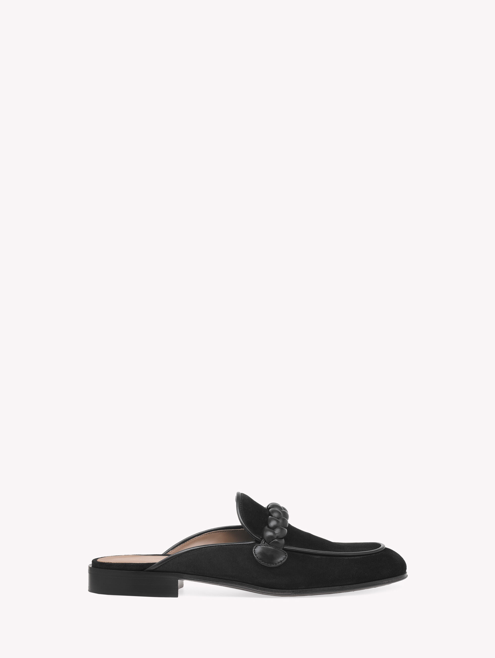 Set on a low 20mm heel, Massimo Slipper is a rounded-toe mule crafted from soft suede. The front upper is embellished with a fine braided detail. Handmade in Italy. - Composition: 70% SUEDE + 30% NAPPA - Heel height: 15 - Model Code: U91990.51CUO Item ID: U91990.51CUO.XUNNENE