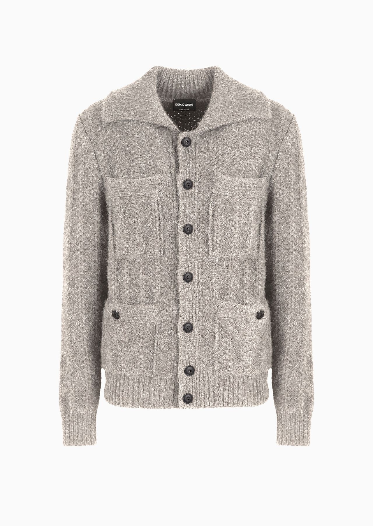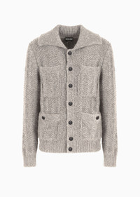 Cardigan made of alpaca and cotton that feels cosy and comfortable. With a button opening and four patch pockets, the style features a vertical construction that highlights the sleek lines. A versatile piece designed to complete informal, casual daytime looks paired with the collection’s shirts and T-shirts. Product Code: GM000367AF123761U6073 Details Composition 55% Alpaca wool 35% Cotton 10% Wool Fineness: 3 Sewn shirt collar Seven-button closure Two patch pockets on the chest Two buttoned patch pockets Vertical texture on the reverse stockinette stitch. Blouson. Two large pockets at the hem on the front with a button. Two breast pockets. Machine plain-knit band for the collar leaf. Front buttoning. Seamless. Fitting The model is 188 cm tall and is wearing size 48 / M