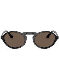 oval-frame sunglasses Highlights - Black - Acetate - Oval frame - Brown tinted lenses - Straight arms - Curved tips - These glasses come with a protective case. Made in Italy Composition Acetate 100% SIZE & FIT Measurement Arm Length 5.7 in(14.5 cm) Bridge Width 0.86 in(2.2 cm) Lens Diameter 2.04 in(5.2 cm)